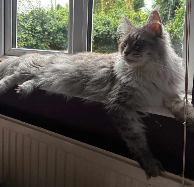 Big Majestic Maine Coon Male, Silver and WhiteOur gorgeous big Maine Coon, male, 2 years old, silver and white, is looking for a new home, through no fault of his own due to personal circumstances. He is neutered, vaccinated, microchipped, and fully litter trained. A gentle giant, he's already large and still growing—true to his breed.